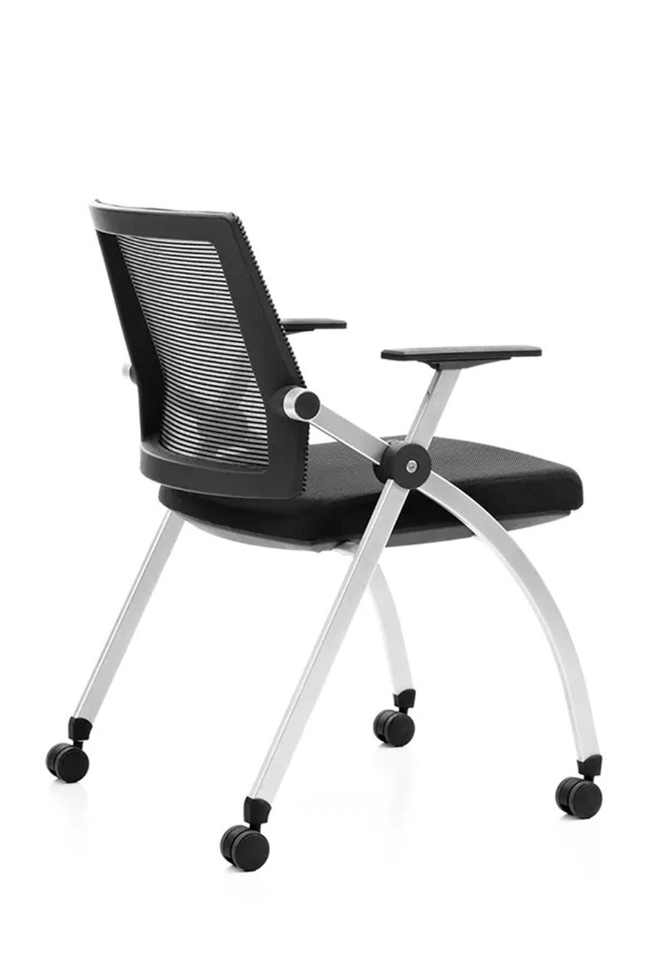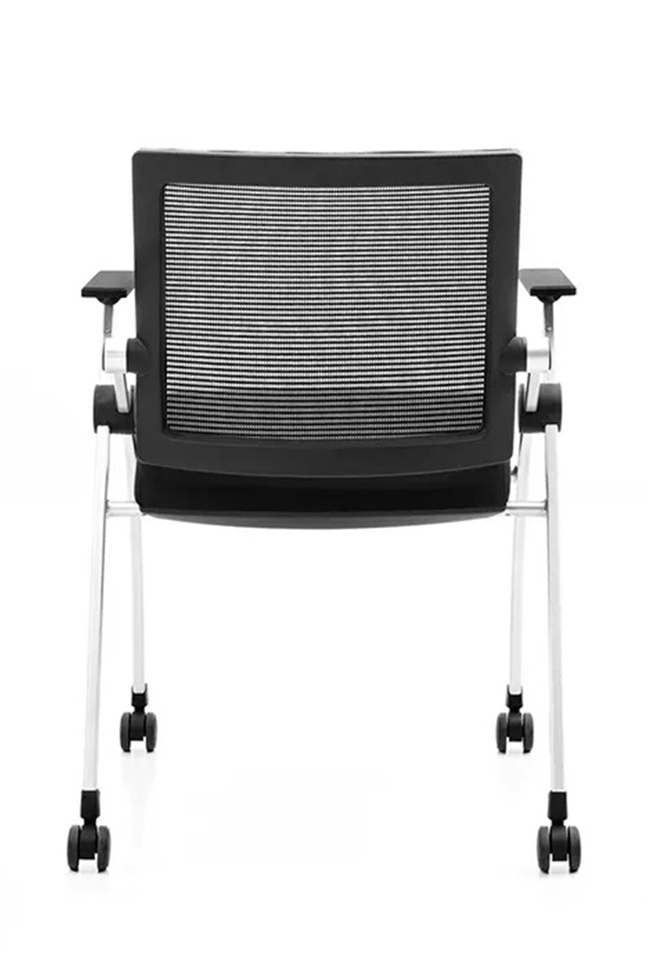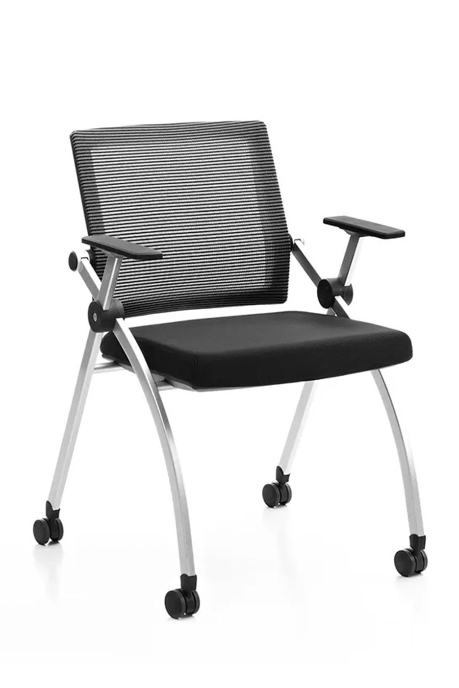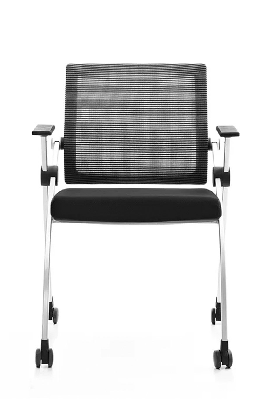 Materials: Mesh back Fabric foam seat Nylon frame PP fixed armrest Stacked horizontally
